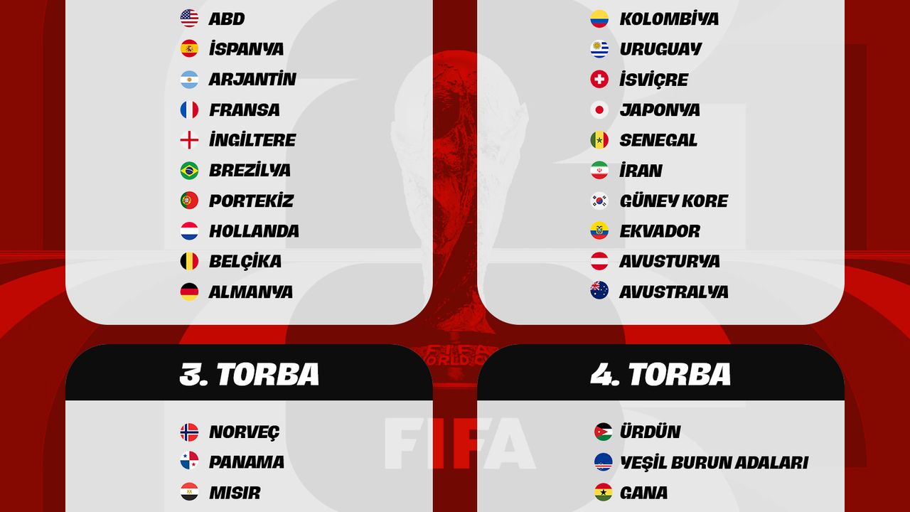 -Kura Çekimi'nde sırasıyla 1, 2, 3 ve 4'üncü Torba takımları yerleştirilecektir.'