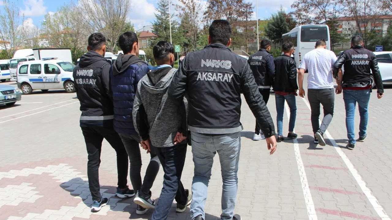 Aksaray Emniyet Müdürlüğü Narkotik Suçlarla Mücadele Şube Müdürlüğü ekipleri, uyuşturucu satıcılarına yönelik operasyon düzenlendi. Yapılan baskınlarda 154 şüpheli gözaltına alındı. Operasyonlarda şüphelilerin ev, otomobil ve iş yerlerinde yapılan aramalarda 2 bin 676 gram kannobinoid, 741 uyuşturucu adet hap, 720 gram metamfetamin, 323 gram esrar, 60 gram skunk, 58 gram amfetamin, 169 bin 060 TL, ruhsatsız 6 tüfek, 147 adet tüfek kartuşu, 5 adet hassas terazi, 3 adet tabanca ele geçirildi. Emniyetteki işlemleri tamamlanan 154 şüpheli, adliyeye sevk edildi. Hakim karşısına çıkan şüphelilerden 29’u tutuklanırken, 125 şüpheli ise adli kontrol şartıyla serbest bırakıldı. (DHA)