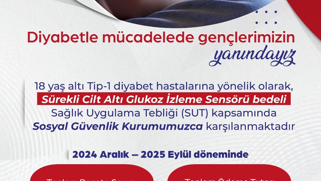 Çalışma ve Sosyal Güvenlik Bakanı Vedat Işıkhan, sosyal medya hesabından yaptığı açıklamada, "Diyabet hastalığıyla mücadele eden çocuklarımızın yaşam kalitelerini artırıyor, ailelerini maddi olarak destekliyoruz. 18 yaş altındaki Tip 1 Diyabet hastası evlatlarımız için sürekli cilt altı glukoz izlem cihazlarını Sosyal Güvenlik Kurumumuz aracılığıyla geri ödeme kapsamına almıştık. 2024 yılı Aralık-2025 yılı Eylül arasında 610 milyon liraya yakın ödeme bedeli olan 76 binden fazla reçeteyi evlatlarımız için karşıladık. 23 yıldır attığımız her adımda milletimizin iyiliğini ve toplumumuzun yararını önceledik. Bundan sonrasında da bu gayretle çalışmaya devam edeceğiz" ifadelerini kullandı. (DHA)