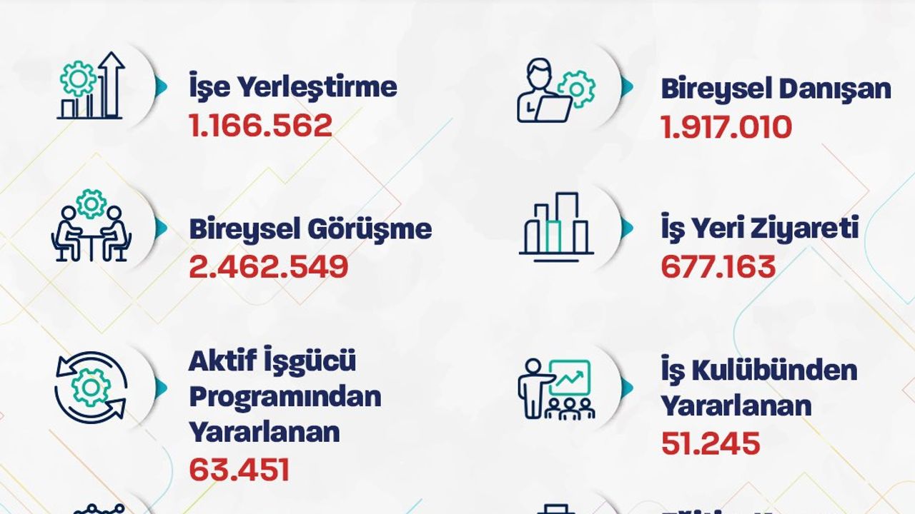 Çalışma ve Sosyal Güvenlik Bakanı Vedat Işıkhan, sosyal medya hesabından yaptığı açıklamada, "İş gücü piyasalarımız güçlendikçe istihdam kapasitemizi de artırıyoruz. Kamu istihdam kurumumuz İŞKUR aracılığıyla ocak-eylül ayları arasında önemli adımlar attık. 1 milyon 166 bin 562 işe yerleştirmeye aracılık ettik. 2 milyon 462 bin 549 bireysel görüşme ve 677 bin 163 iş yeri ziyareti gerçekleştirdik. 1 milyon 829 bin 831 açık iş (işveren tarafından talep edilen-ihtiyaç duyulan eleman) tespit ettik. Bu adımlarımızla, ekonomi ve istihdam alanında politikalarımızı içeren Orta Vadeli Program (OVP) hedeflerimize ulaşacağımıza inanıyorum. Unutma İŞKUR'da iş var" ifadelerini kullandı. (DHA)