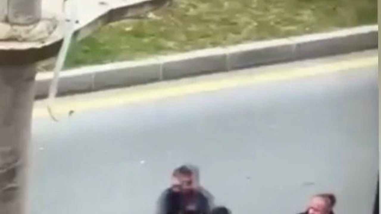 Kısa sürede kavgaya dönüşen olayda hafif ticari aracın sürücüsü, çocuğunun yanında babaya saldırdı. Tarafların birbirine yumruk, tekme ve kaskla saldırdığı kavga, çevredeki kişiler tarafından cep telefonu kamerasıyla kaydedildi.