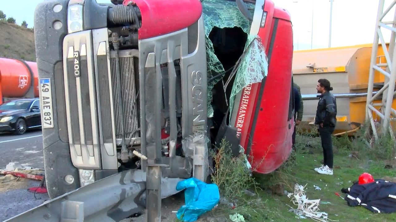 Kaza saat 15.30 sıralarında Eyüpsultan Kuzey Marmara Otoyolu Başakşehir istikametinde meydana geldi. 49 AAE 837 plakalı kum yüklü hafriyat kamyonunun sağ ön lastiği seyir halindeyken patladı. Lastiğin patlamasıyla kontrolden çıkan kamyon yan yatarak bariyerlere çarptı. Çevredekilerin ihbarı üzerine adrese itfaiye, acil sağlık ve polis ekipleri geldi. Sağlık ekiplerinin kontrollerinde kazada yaralandığı belirlenen kamyon şoförü olay yerindeki ilk müdahalenin ardından ambulansla hastaneye kaldırıldı. Kazada kamyondan dökülen kumlar sebebiyle Başakşehir istikametinde trafik yoğunluğu oluştu. Kamyonun çekici yardımıyla kaldırılmasının ardından trafik akışı normale döndü.