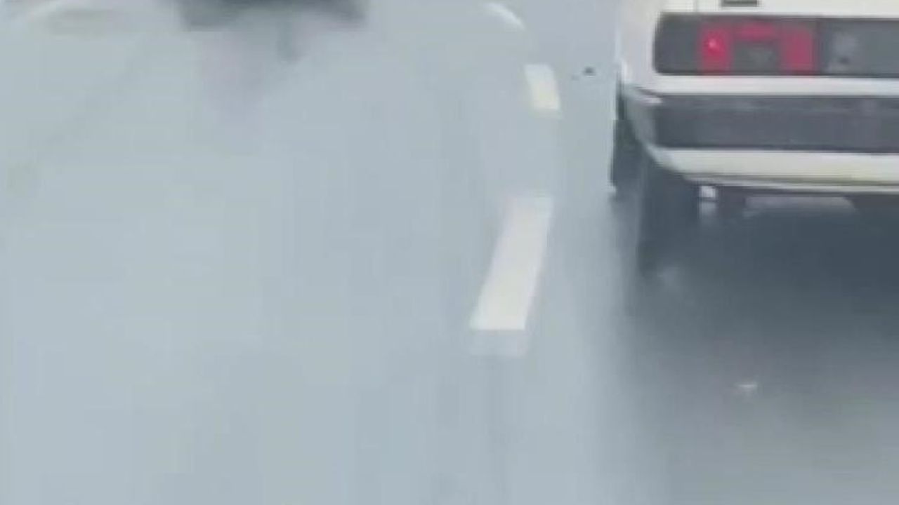 Görüntüleri çeken kişinin yaşadığı şaşkınlık, 'Bunda ayna var bunda ayna yok. Öndeki sarıda da ayna yok. Zaten ikisi de arkadaşlar. İki arabada da ayna yok.Öndekinde plaka var arkadakinde plaka da yok ' cümlelerine yansıdı. Uzun süre bu şekilde trafikte ilerleyen iki otomobil bir süre sonra trafikte gözden kayboldu. (DHA)