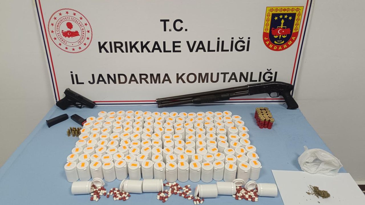 İl Jandarma Komutanlığı ekipleri, uyuşturucu ticareti yaptığı tespit edilen M.İ.'nin Yenice Mahallesi'ndeki evine operasyon düzenledi. Şüpheliyi gözaltına alan jandarma, evde yaptığı aramada 8 bin 252 uyuşturucu hap, 2 gram kubar esrar, ruhsatsız tabanca, ruhsatsız pompalı av tüfeği ve silahlara ait mühimmat ele geçirdi. Jandarmadaki işlemleri tamamlanan şüpheli, adliyeye sevk edildi. Hakim karşısına çıkan şüpheli, tutuklandı. (DHA)