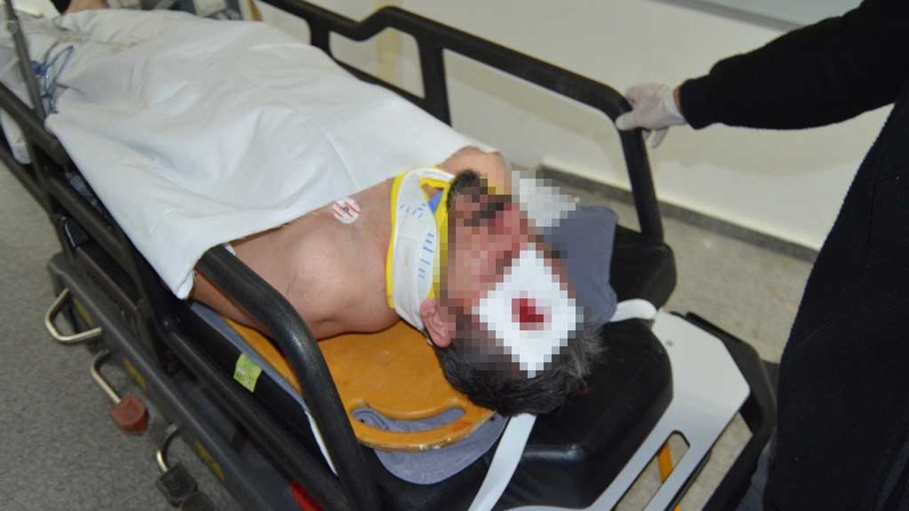 Kazadan yara alamdan kurtulan Mustafa Bağlan, ifadesi alınmak üzere polis merkezine götürüldü. (DHA)