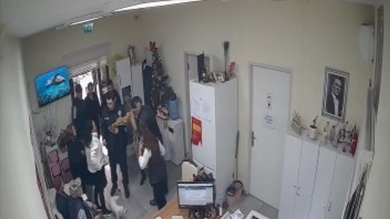 Kadınla muhtar arasındaki kavga anları ise güvenlik kamerasına yansıdı.