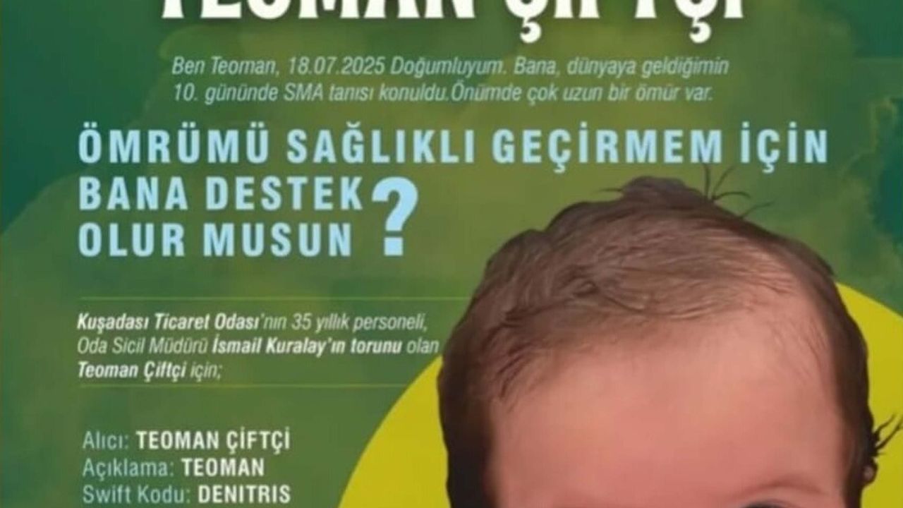 Kuşadası'nda yaşayan Yağmur-Enis Talha Çiftçi çiftinin 5 aylık bebekleri Teoman'a, doğduktan 10 gün sonra özel bir hastanede yapılan topuk kanı testinden, SMA Tip 1 teşhisi konuldu. Çiftçi çifti, yaptıkları araştırmada, SMA Tip 1 hastaları için Dubai'de uygulanan ve yüzde 95 oranında başarıya ulaşan tedavinin olduğunu öğrendi. Aile, bebekleri için 12 Eylül'de Aydın Valiliği'nin verdiği izinle yardım kampanyası başlattı. 1 milyon 817 bin dolar tutan gen tedavisi masraflarını toplama hedefiyle başlatılan kampanyada, şu ana kadar yüzde 71'e ulaşıldı. Teoman Çiftçi'nin rahatsızlığı nedeniyle evde izole yaşayan ve dışarı çıkmayan annesi Yağmur Çiftçi için apartmanın bahçesinde gönüllüler tarafından doğum günü sürprizi yapıldı.
