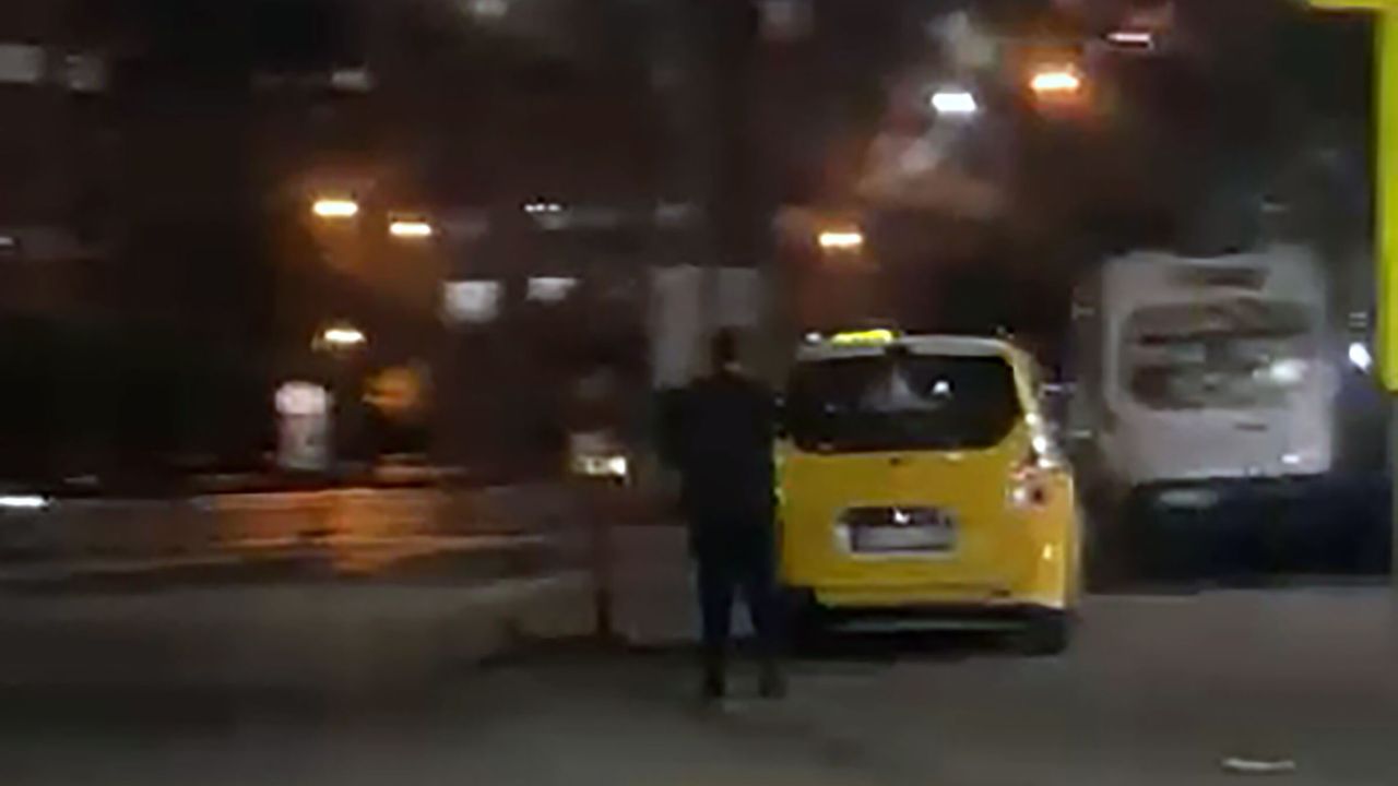 Olay, önceki gün akşam saatlerinde Seyhan ilçesi Alparslan Türkeş Bulvarı'nda meydana geldi. Hafif ticari aracıyla seyir halindeki Musa Y., iddiaya göre, Metin T.'nin kullandığı taksiye çarpıp, bölgeden ayrıldı. Bunun üzerine Metin T., takip ettiği hafif ticari aracın kavşakta beklediğini görünce tahta sopayla taksiden indi. Musa Y.'nin yanına gidip, aracın kapısını zorlayan Metin T., açamadı. Trafik ışığının yeşile dönmesinin ardından Musa Y. yoluna devam ederken, Metin T. de taksisine binerek uzaklaştı. O anlar başka bir sürücünün cep telefonu kamerasıyla kaydedildi.