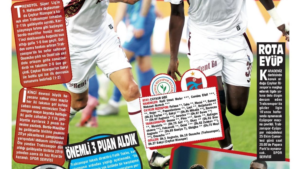 Öte yandan Trabzon’da yayın yapan yerel gazeteler de bordo-mavili takımın deplasmanda Çaykur Rizespor karşısında aldığı galibiyeti farklı başlıklarla manşetlerine taşıdı.